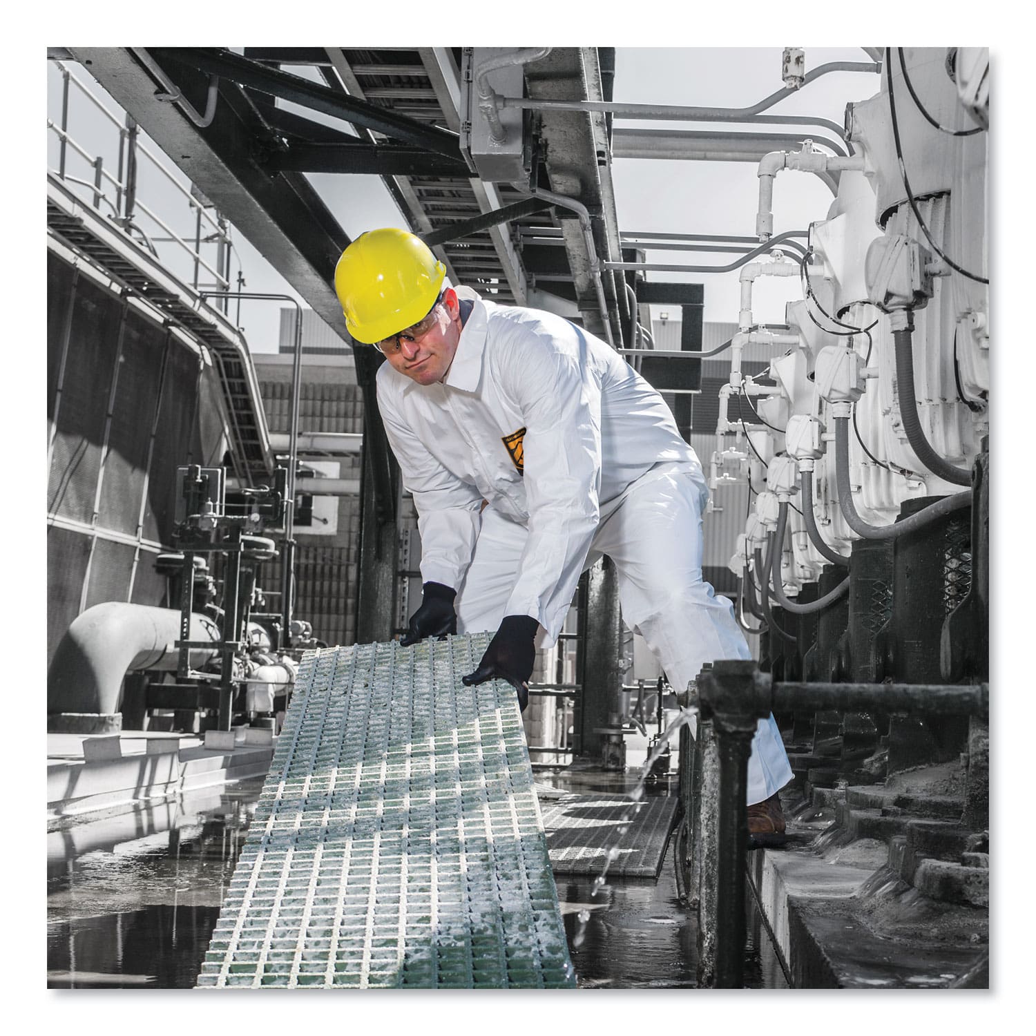 Ultra-durable, patented Reflex* design minimizes the potential for rips and tears while providing more chest room than average. SMS barrier fabric ensures superior dry particulate and light liquid spray holdout. Seamless front minimizes the potential for wear-related gaps throughout the primary exposure area. Lightweight, air-permeable cloth enhances wearing comfort. Anti-static rating provides extra piece of mind when working near sensitive electronics.