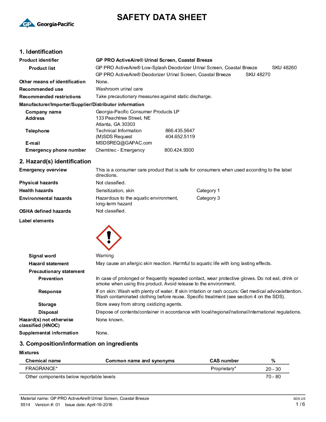 The GP PRO ActiveAire™ product line is a 360ş approach to battle odor, the second most frequent restroom complaint. Try the Award-Winning motion activated ActiveAire® Freshener Dispenser for Compact®, one of our ActiveAire® Whole-Room Freshener Dispensers and our ActiveAire™ Deodorizer Urinal Screens. With a range of matching clean, fresh scents available across the entire product line you can be confident your restrooms will provide a consistent and more welcoming experience for everyone. GP PRO is a division of Georgia-Pacific Consumer Products. We deliver well-designed, durable and easy-to-maintain professional solutions to meet the handwashing and cleaning needs for a range of business applications.