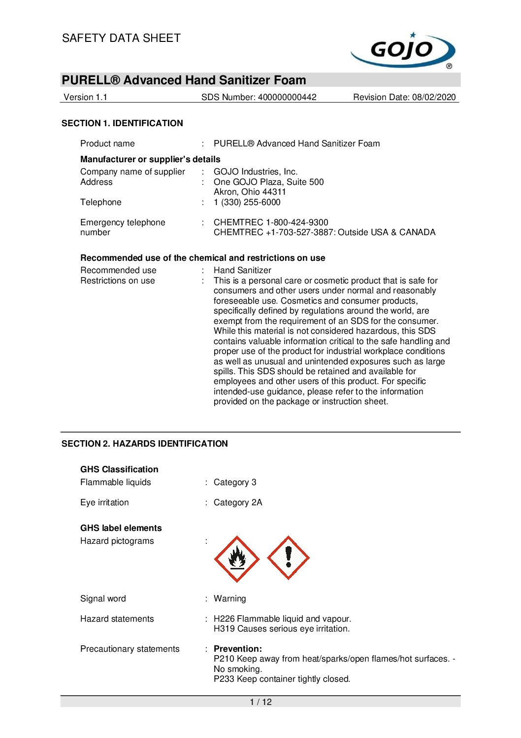 Global Product Type | Hand Sanitizer Refills, Moisturizing Foam |