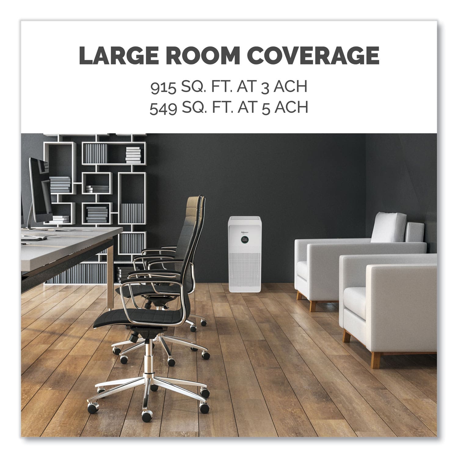 - Large room coverage, recommended for rooms up to 915 square feet.