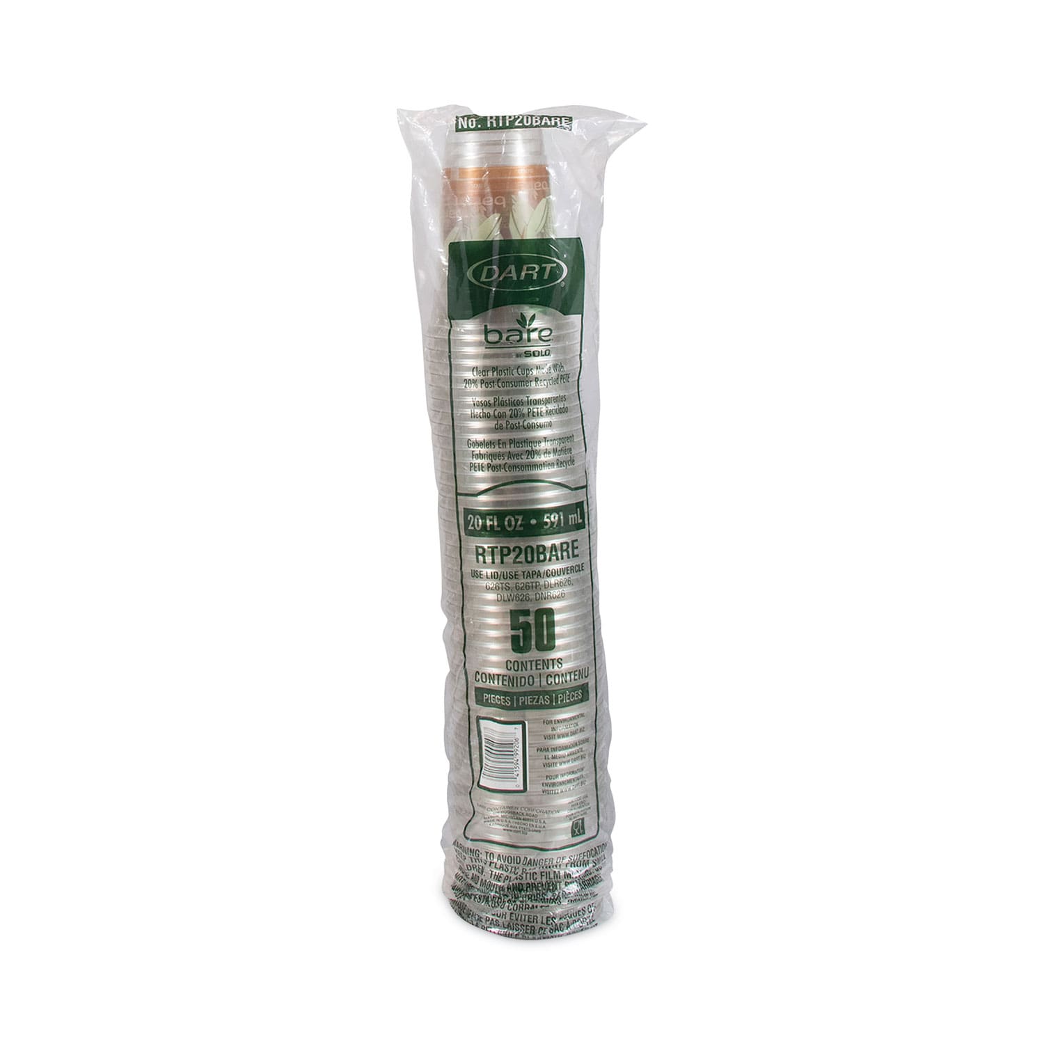 Bare Eco-Forward RPET Cold Cups 20 oz, ProPlanet Seal, Leaf Design, Clear, 50/Pack, 12 Packs/Carton
