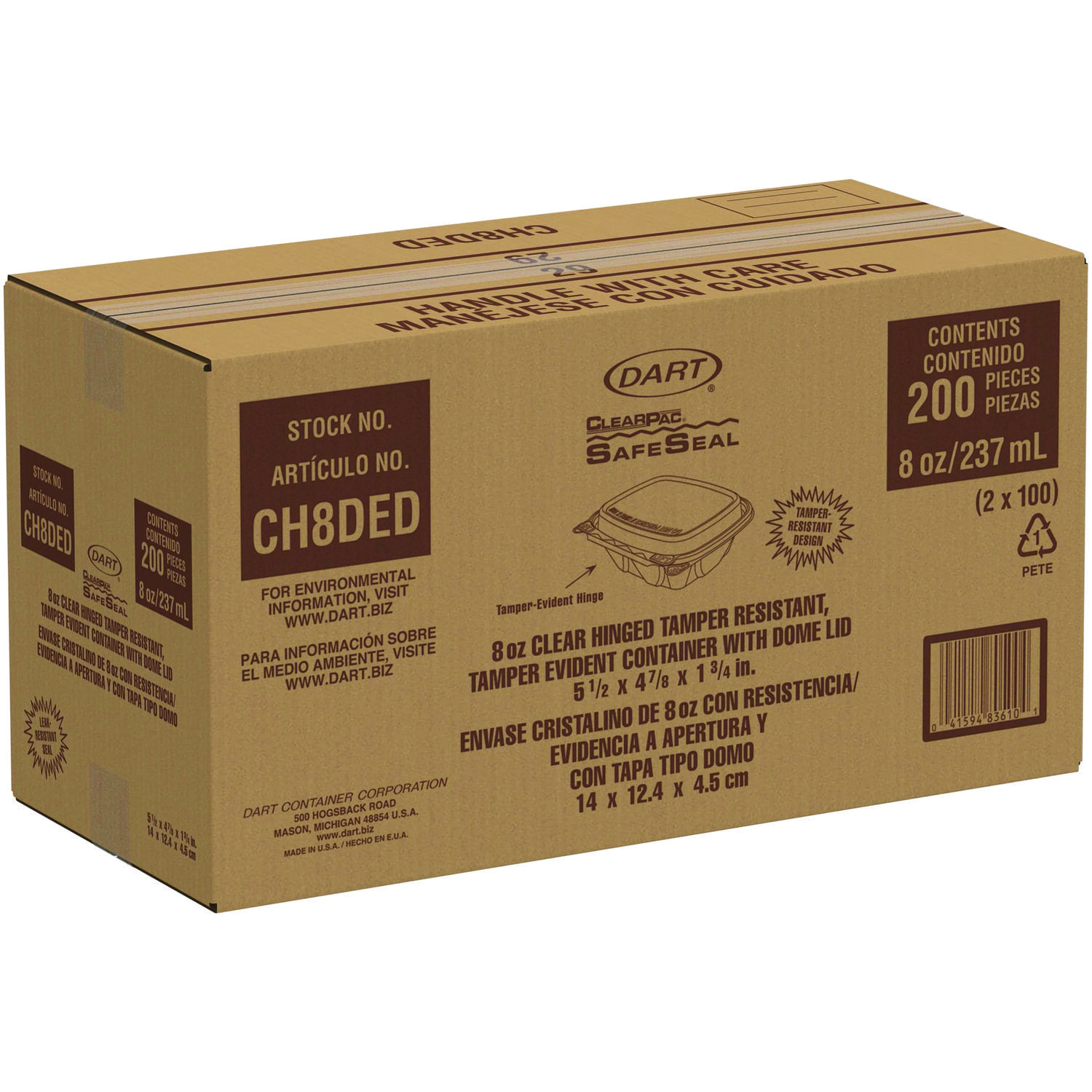 ClearPac SafeSeal Tamper-Resistant/Evident Containers, Domed Lid, 8 oz, 4.9 x 1.9 x 5.5, Clear, Plastic, 100/Bag, 2 Bags/CT
