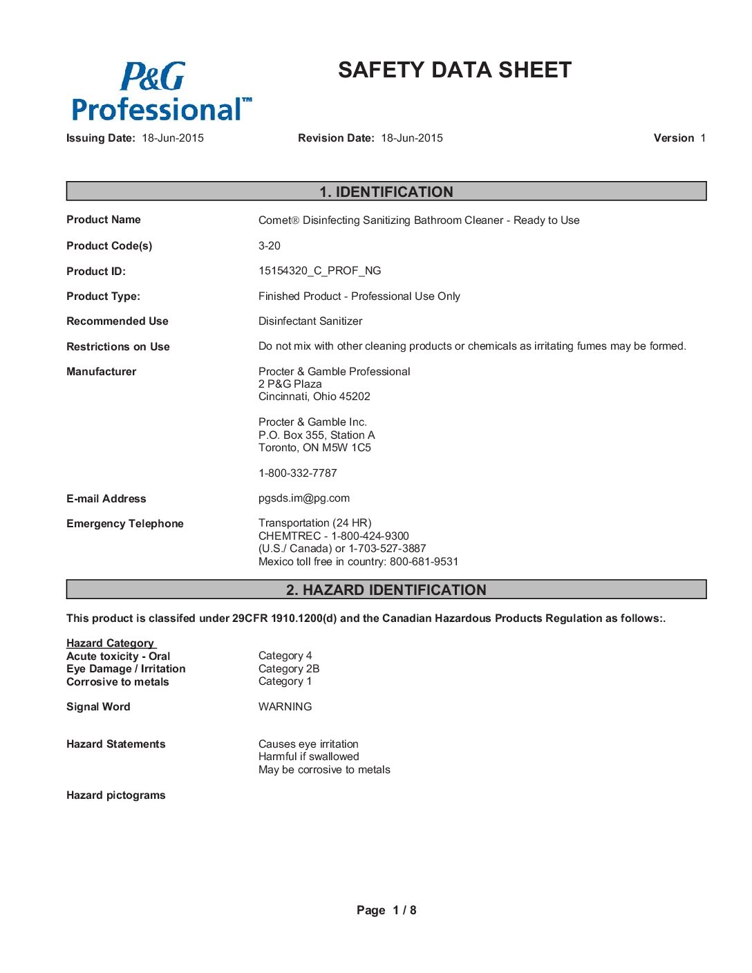 Comet Disinfecting-Sanitizing Bathroom Cleaner is a powerful bathroom disinfectant cleaner that cuts through tough soap scum, leaving surfaces clean and disinfected (when used per disinfecting label instructions). Its patented no scrub bathroom cleaner formula uniquely penetrates tough bathroom soils with little effort. It’s nonabrasive, so it safely cleans porcelain, fiberglass, ceramic, Formica, enamel, chrome, stainless steel and synthetic marble. With no rinsing required, just spray it on and wipe the restroom clean. This disinfecting bathroom cleaner deodorizes, leaving the restroom smelling clean and fresh.