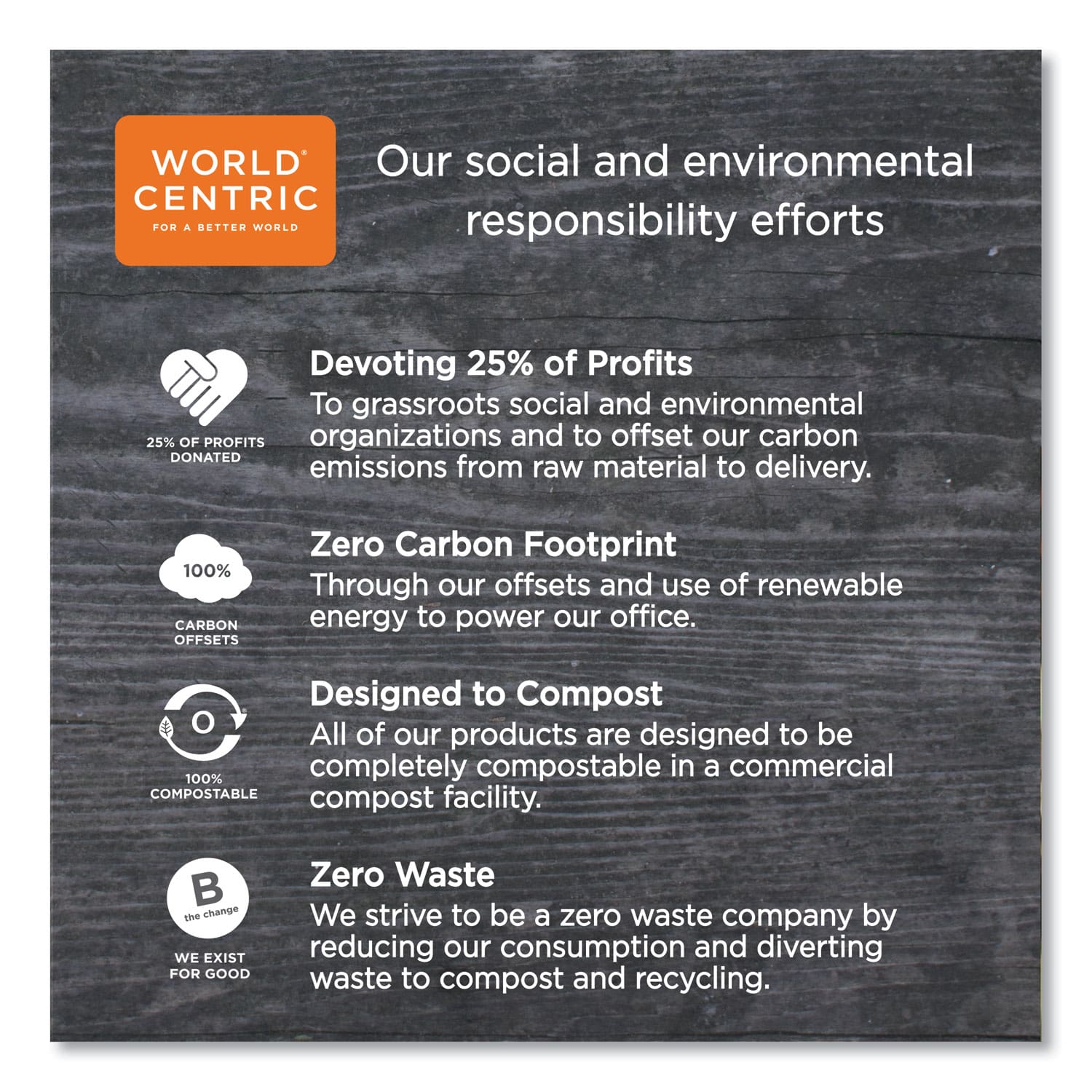 - 100% compostable in two to four months in a commercial composting facility.