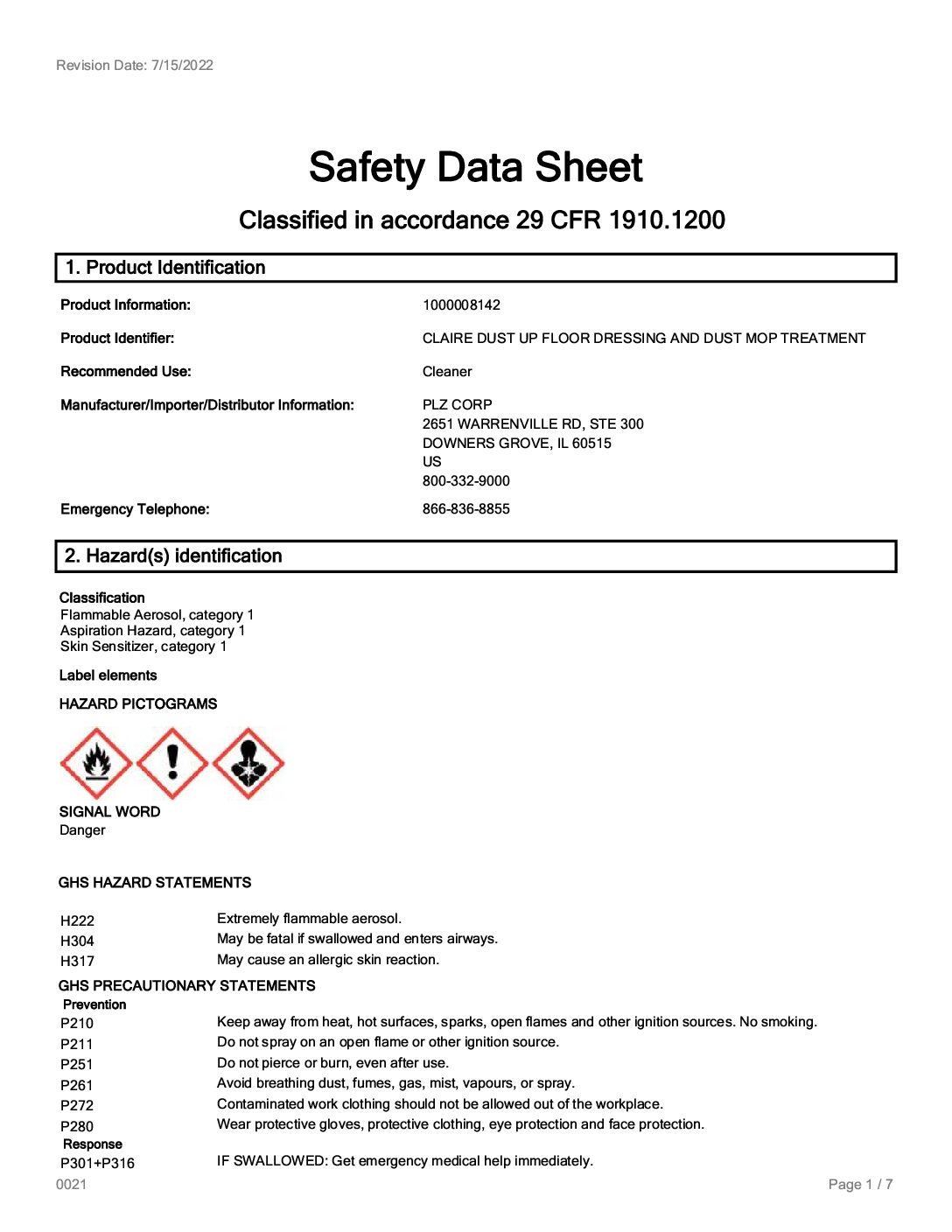 | Disclaimer Statement | When stored properly, we expect all products that are formulated and developed by PLZ Corp to have a minimum shelf life of three years from the date of manufacture. |