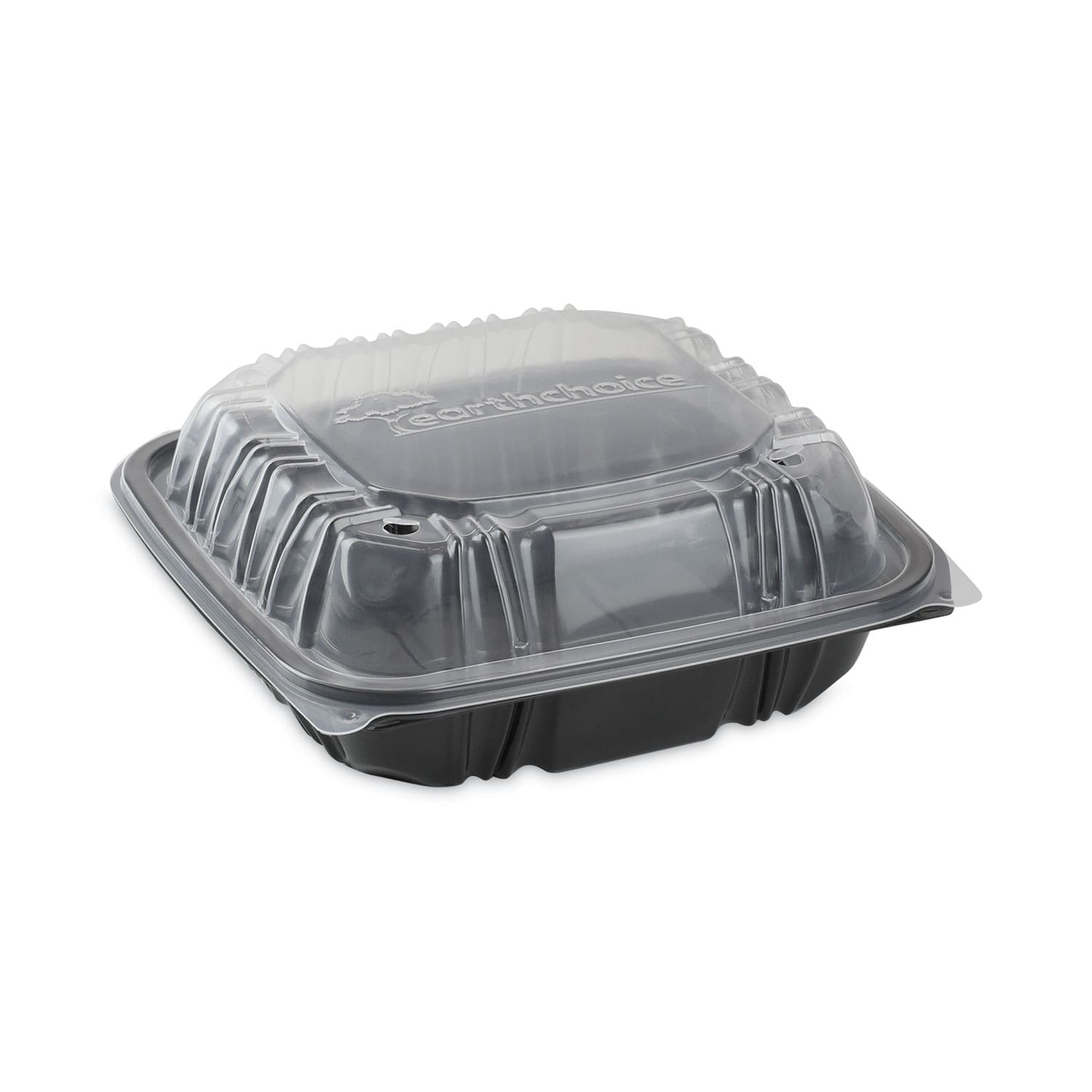 EarthChoice Vented Dual Color Microwavable Hinged Lid Container, 1-Compartment, 38oz, 8.5×8.5×3, Black/Clear, Plastic, 150/CT