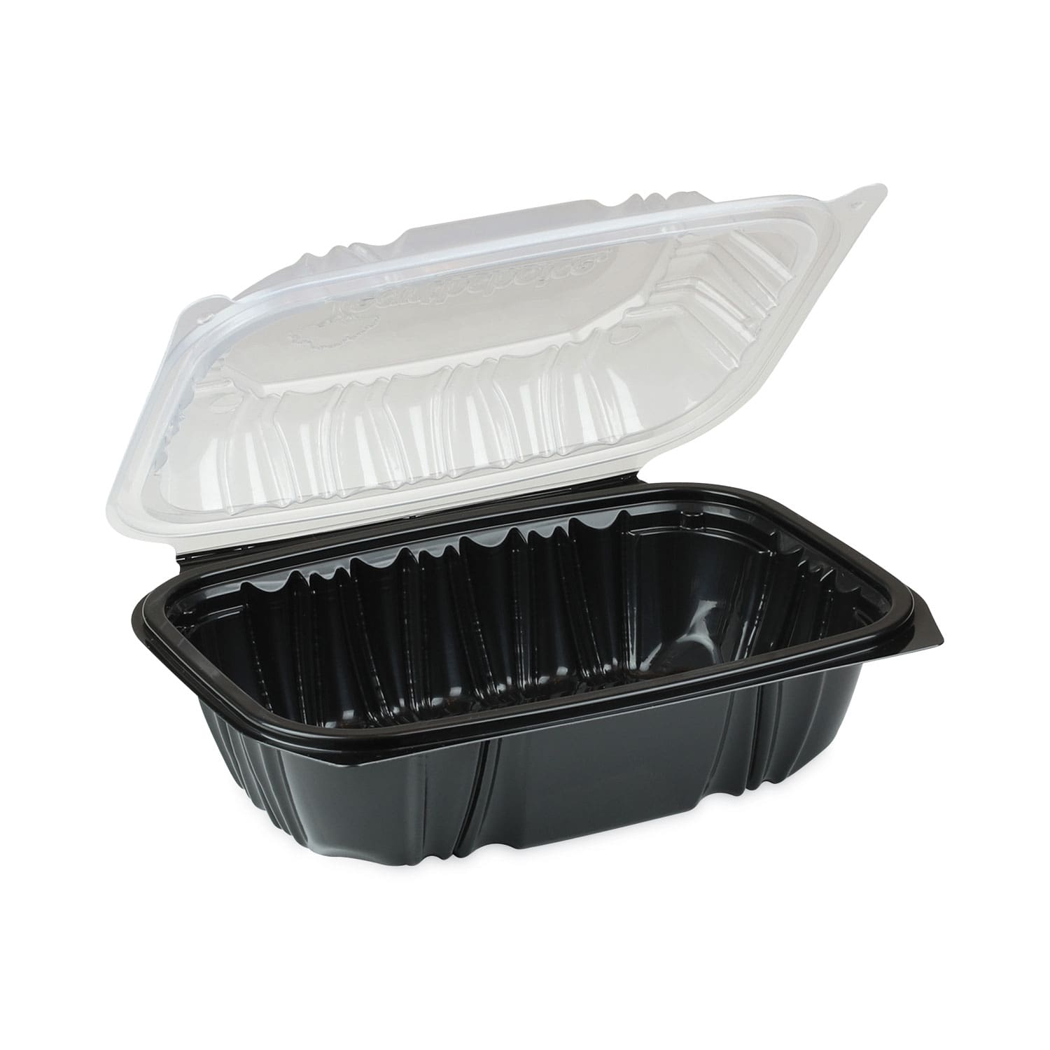 EarthChoice Vented Dual Color Microwavable Hinged Lid Container, 34oz, 9 x 6 x 3, 1-Compartment, Black/Clear, Plastic, 140/CT