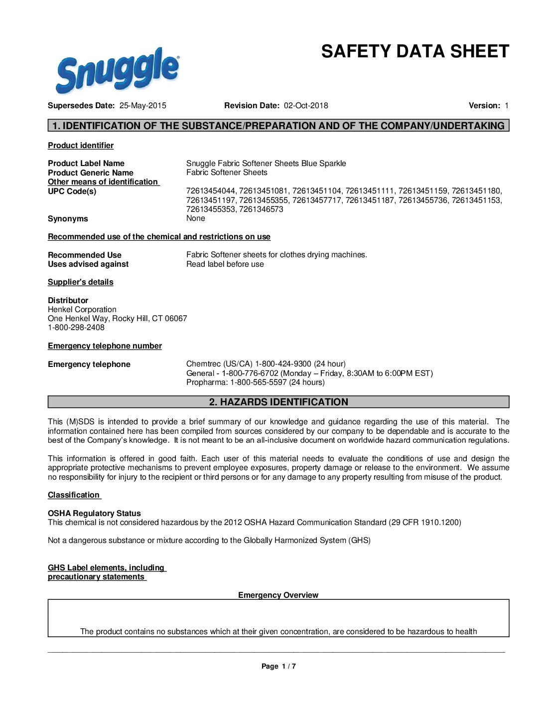 | Global Product Type | Fabric Softener/Antistatic Sheets |