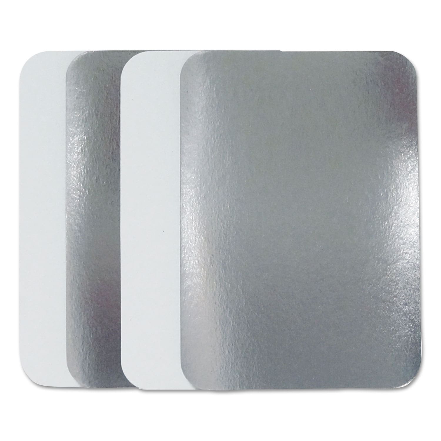 Used for food pans. Paper board lids with aluminum bottom. Ideal for takeaways.