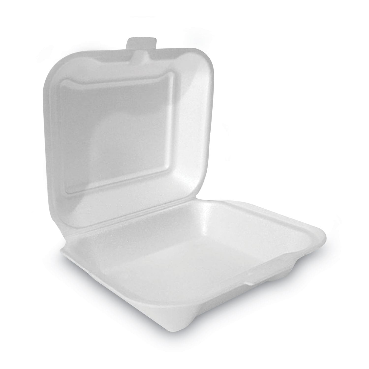 Foam Hinged Lid Container, Secure One Tab Latch, Poly Bag, 7.81 x 8.75 x 3.38, White, 100/Sleeve, 2 Sleeves/Bag, 1 Bag/Pack