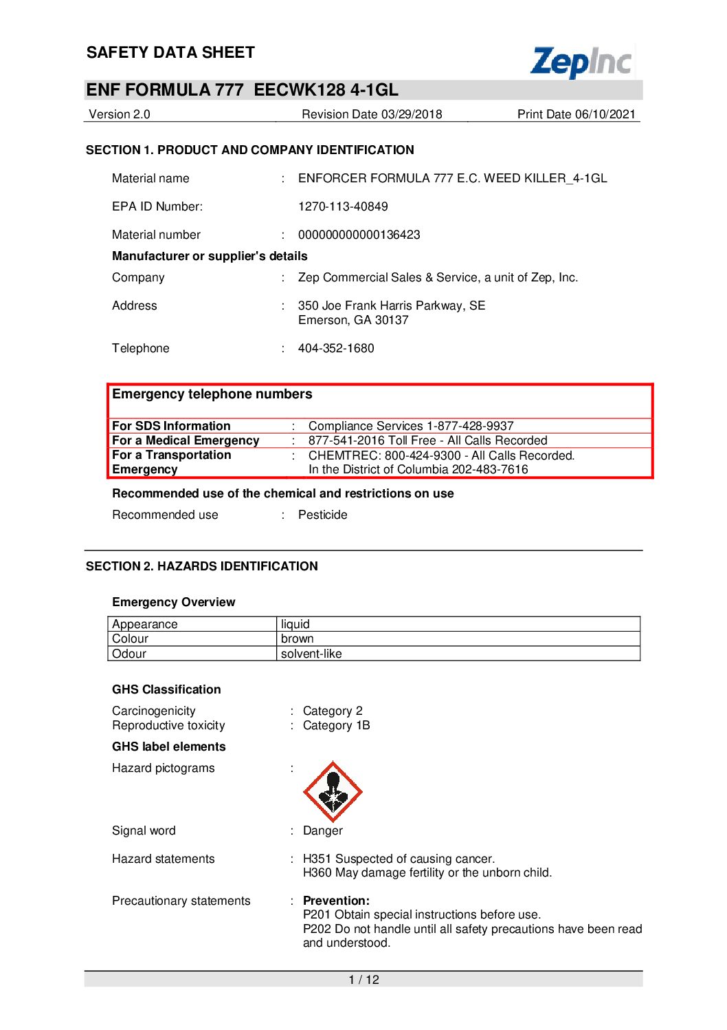 Formula 777 E.C. Weed Killer, Non-Cropland, 1 gal Can, 4/Carton