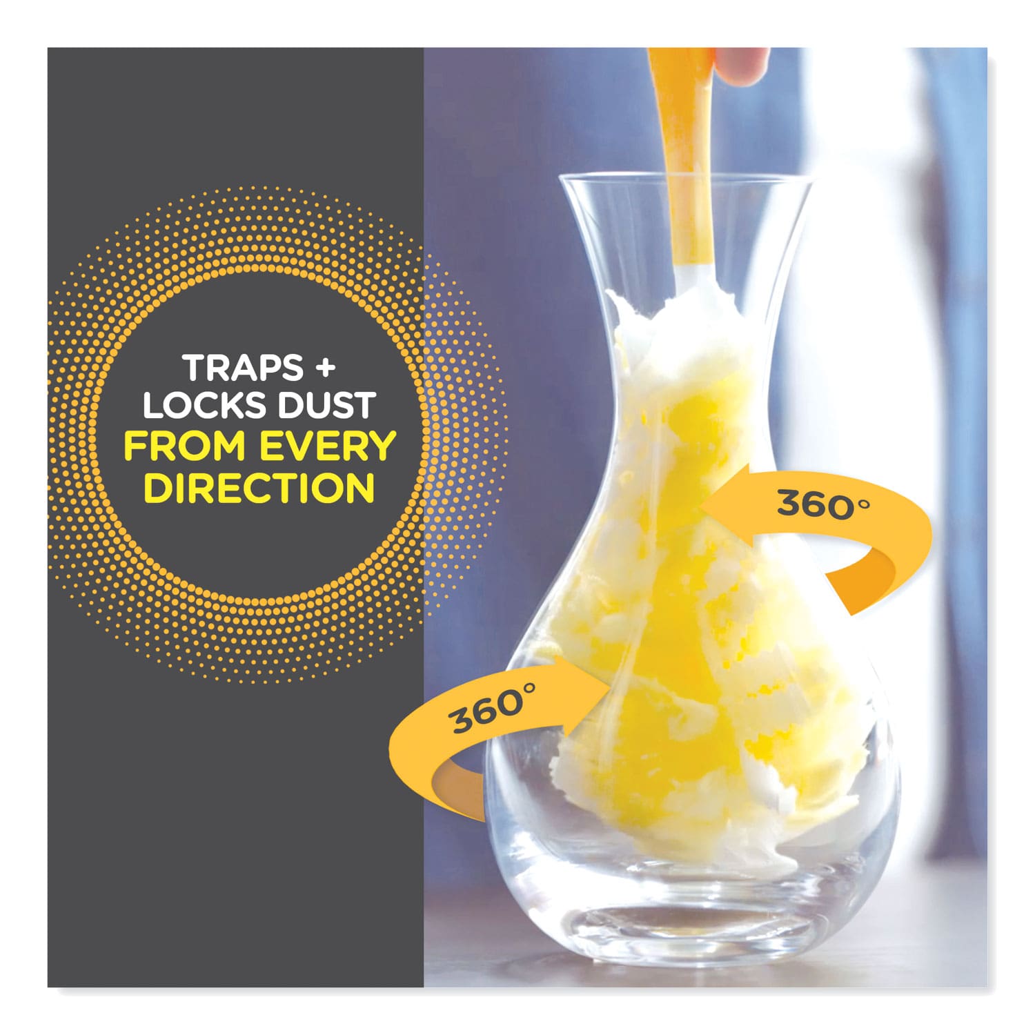 • All-around design traps dust maximizing surface area.