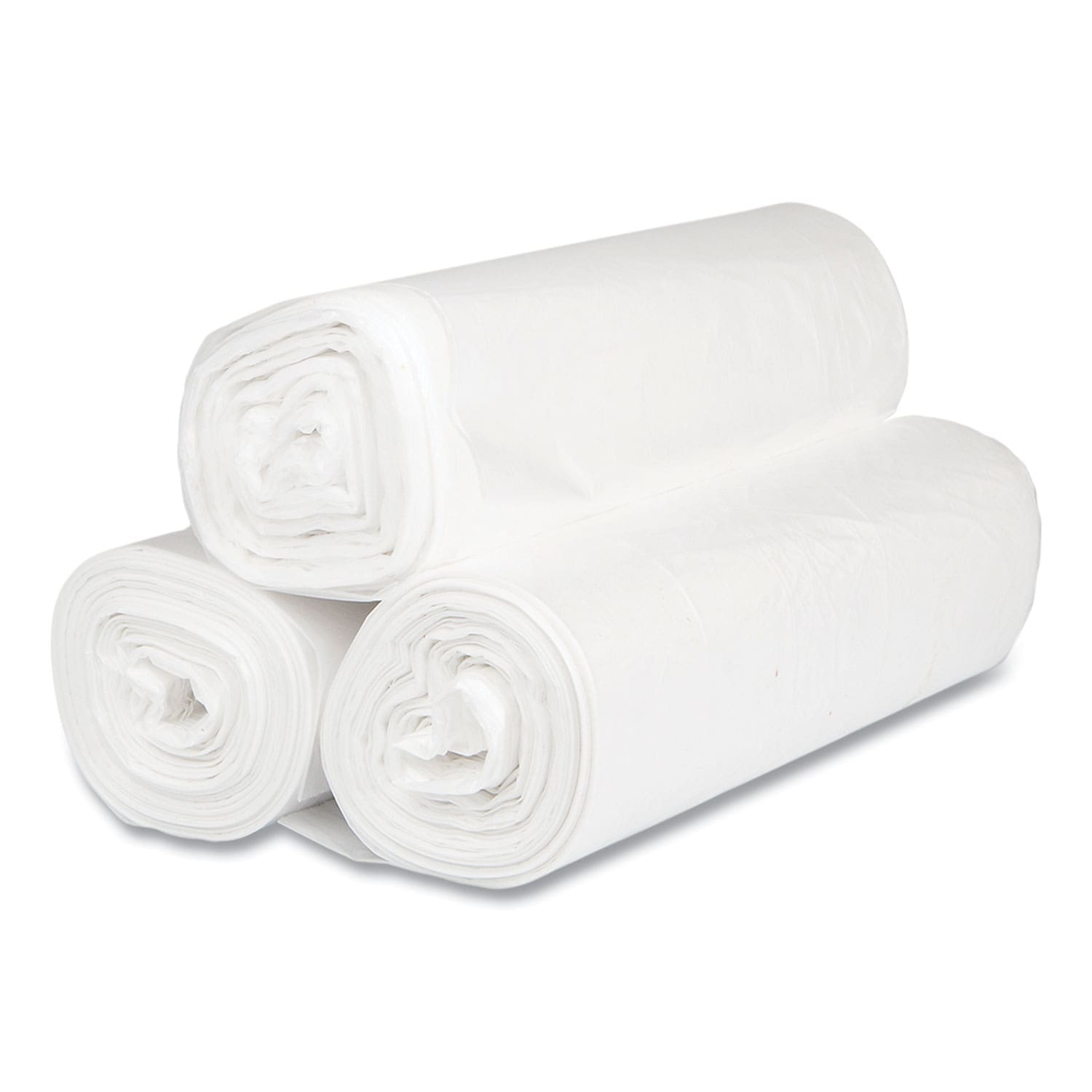 High-Density Commercial Can Liners, 45 gal, 16 mic, 40″ x 48″, Clear, 25 Bags/Roll, 10 Interleaved Rolls/Carton