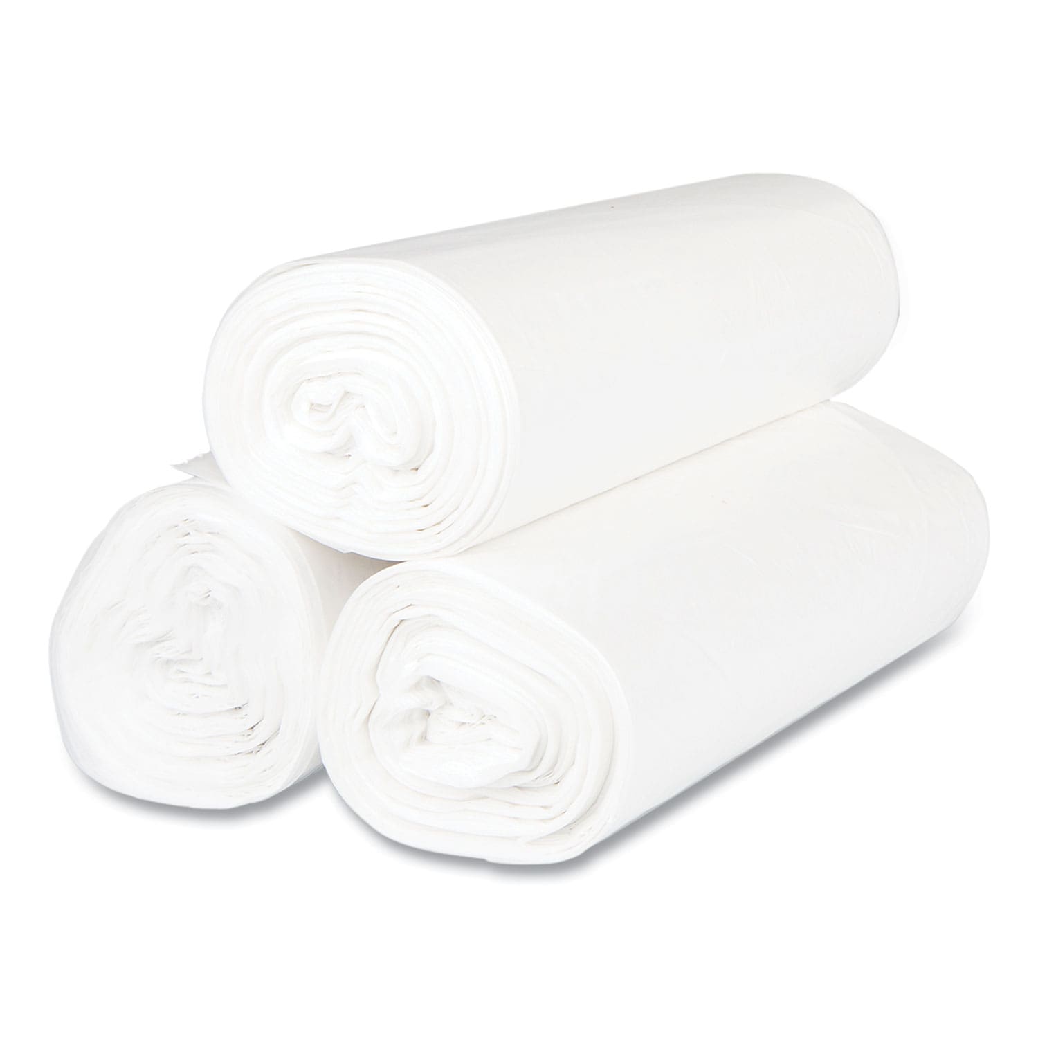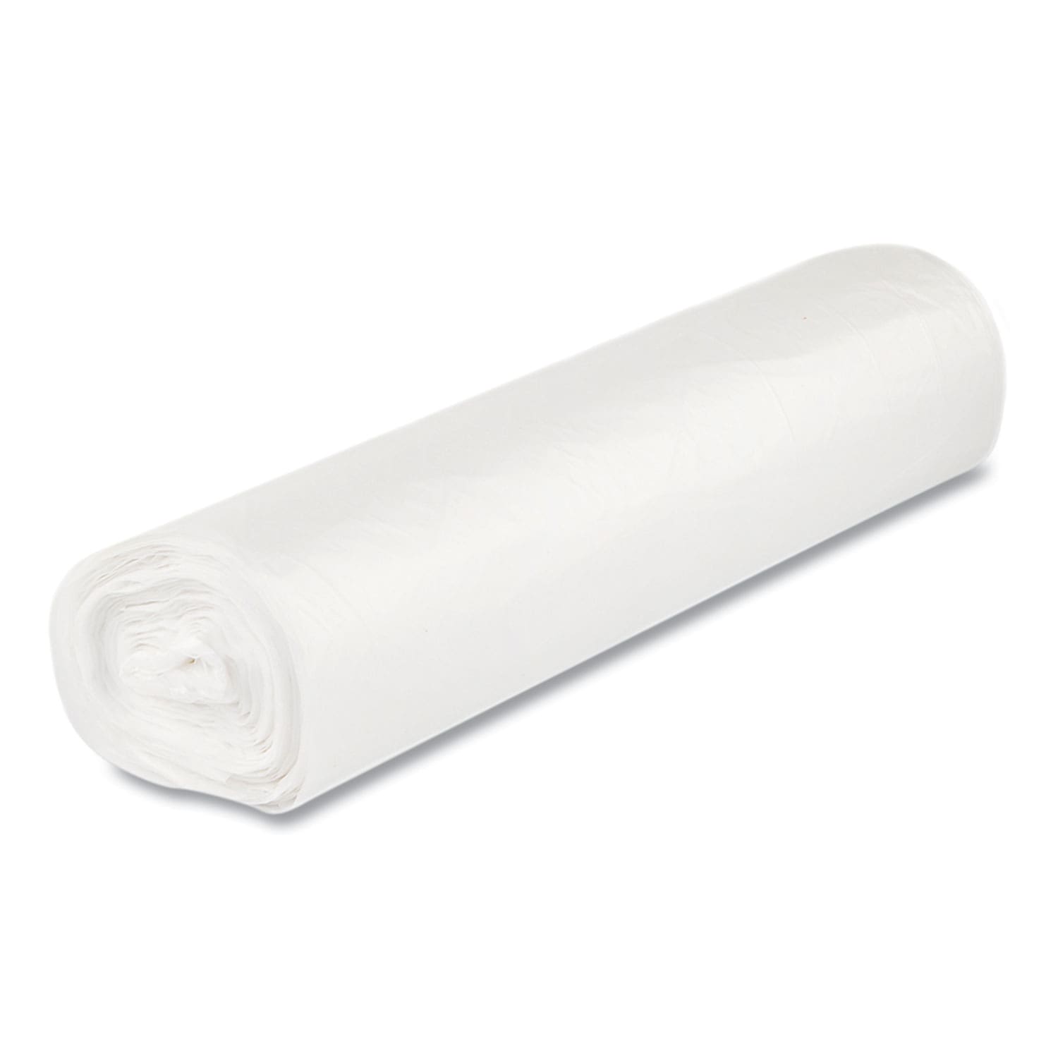 High-Density Commercial Can Liners, 60 gal, 17 mic, 43″ x 48″, Clear, 25 Bags/Roll, 8 Interleaved Rolls/Carton
