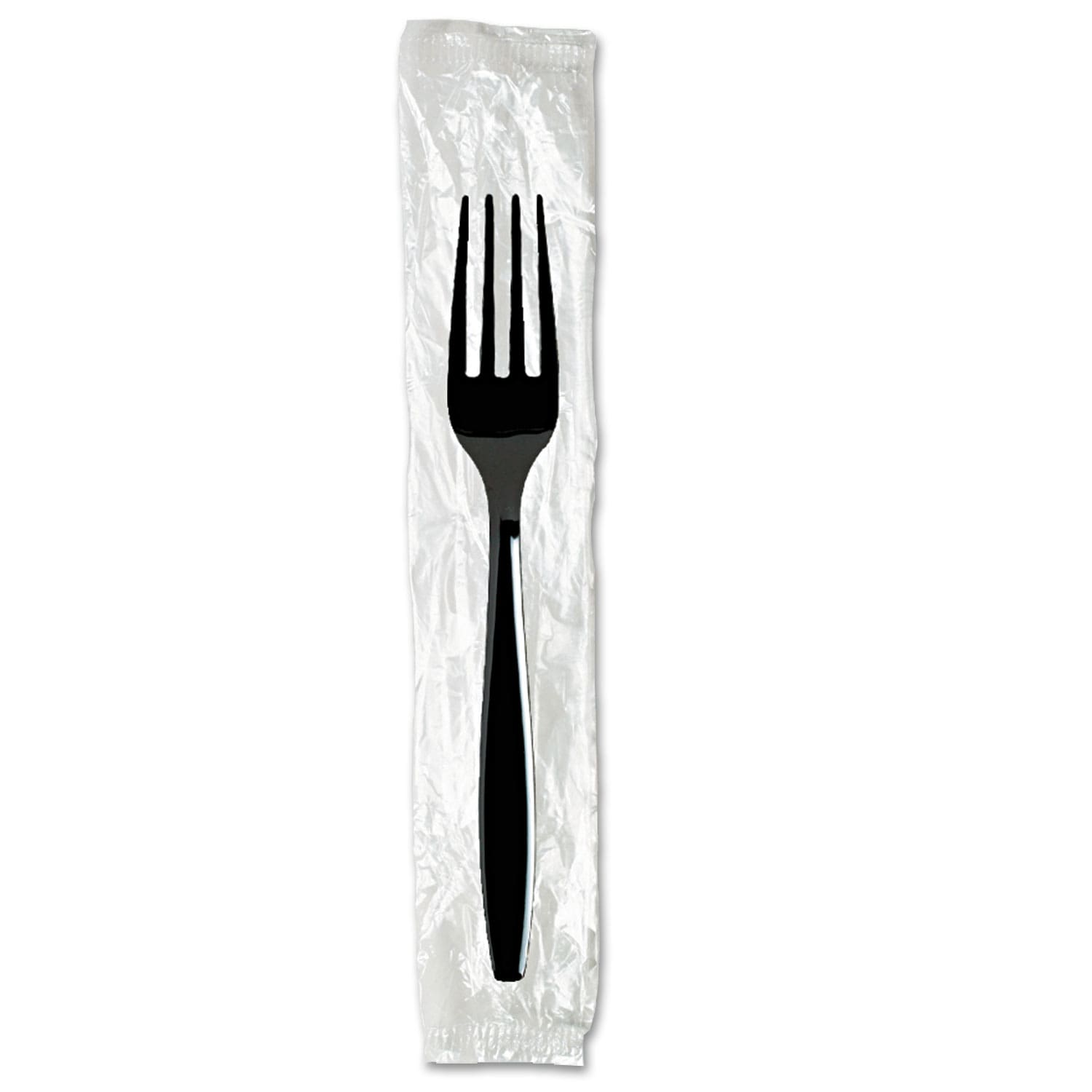 Individually Wrapped Heavyweight Forks, Polystyrene, Black, 1,000/Carton