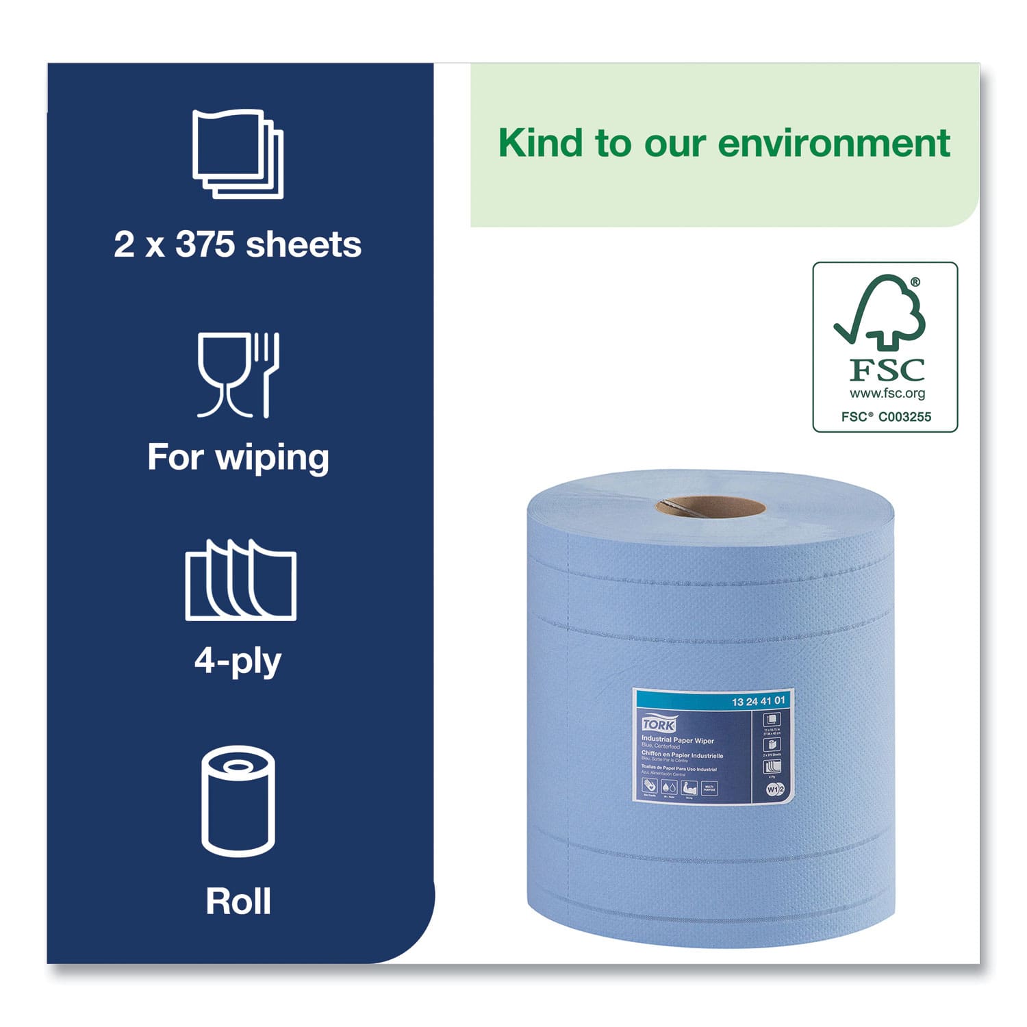 Industrial Paper Wiper, 4-Ply, 11 x 15.75, Unscented, Blue, 375 Wipes/Roll, 2 Rolls/Carton