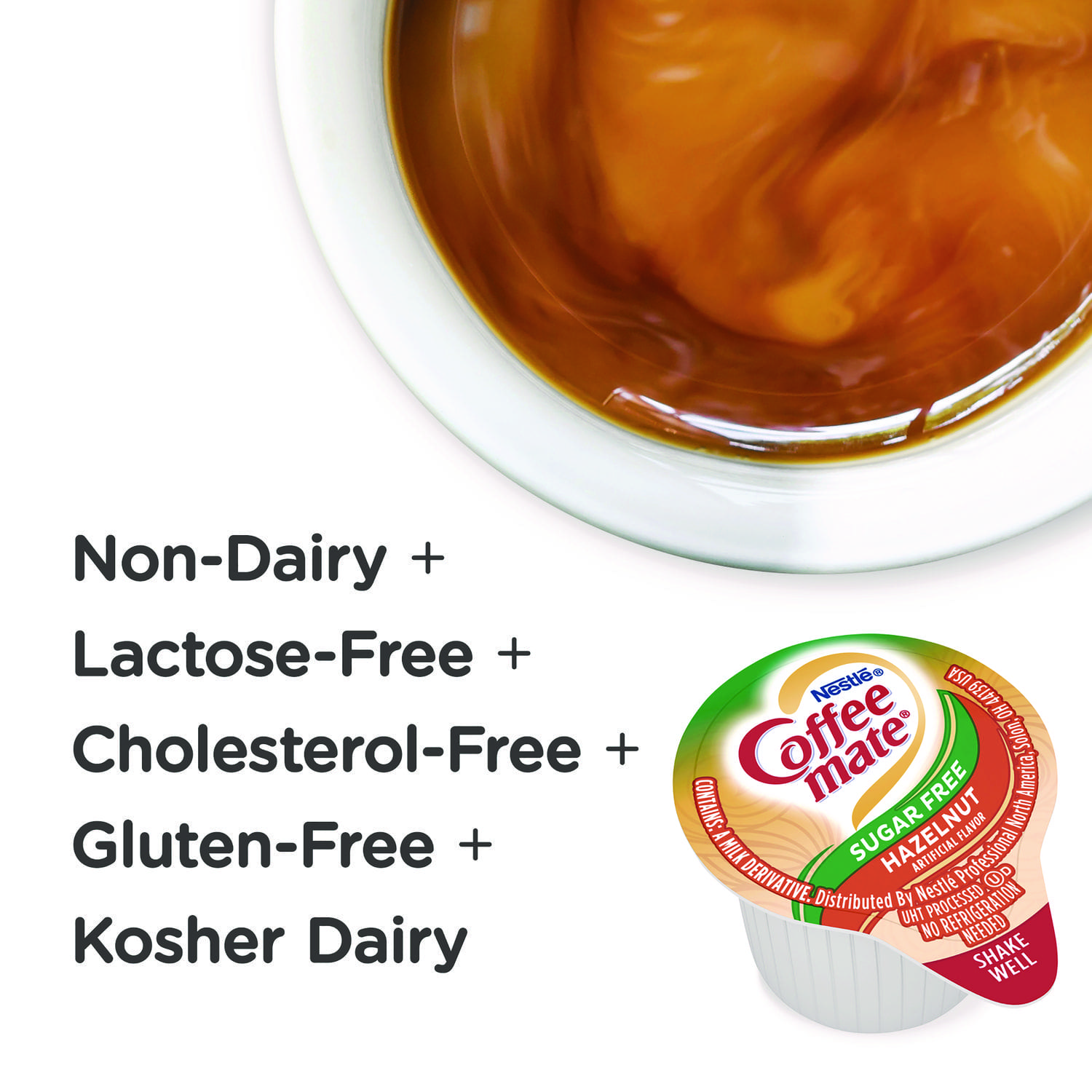 • Non-dairy liquid creamer in convenient single servings that are great for "here" or "to go".