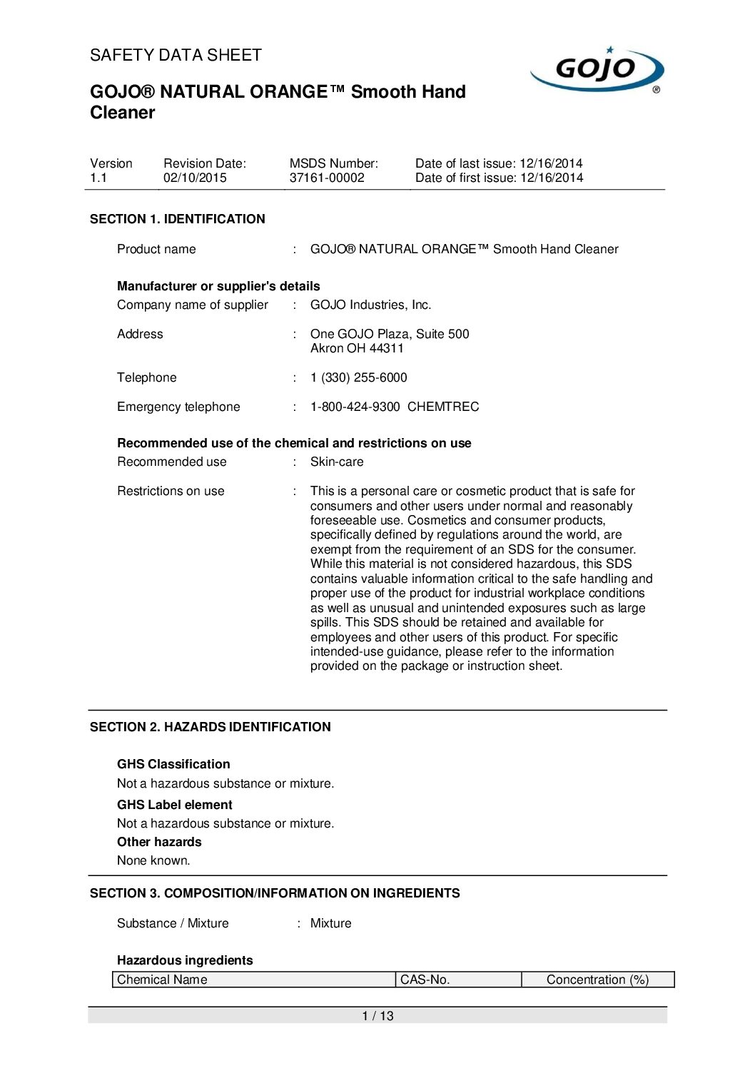 Quick-acting, lotion hand cleaner. Contains a natural citrus ingredient. Cleans without harsh solvents. Effective on dirt and oil.