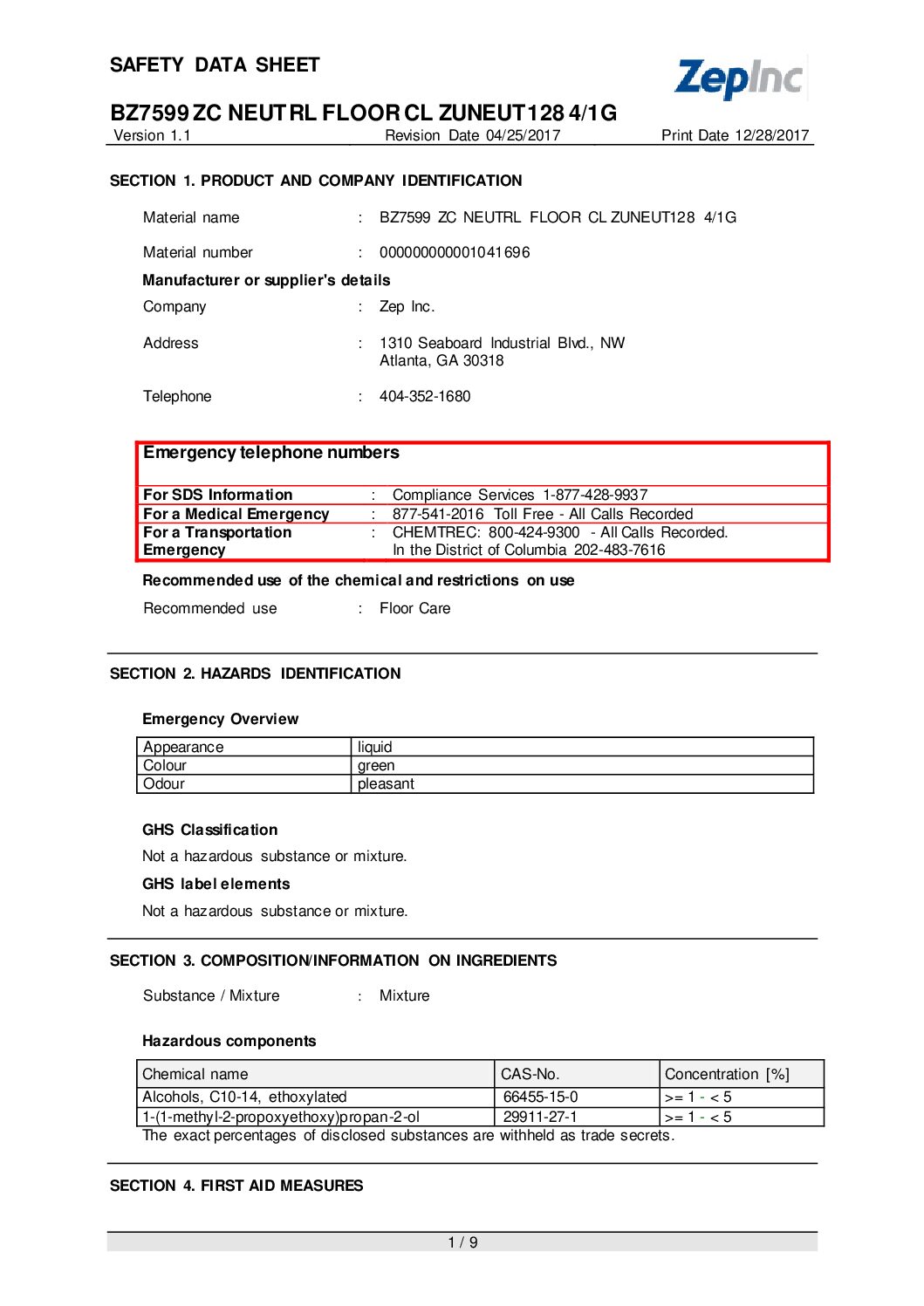 Deodorizes, cleans and restores shine. Great on marble, granite, vinyl (VCT) and stone floors. Neutral pH will not harm floor finishes. Low foam and suitable for automatic floor scrubbers. Makes up to 128 gallons.