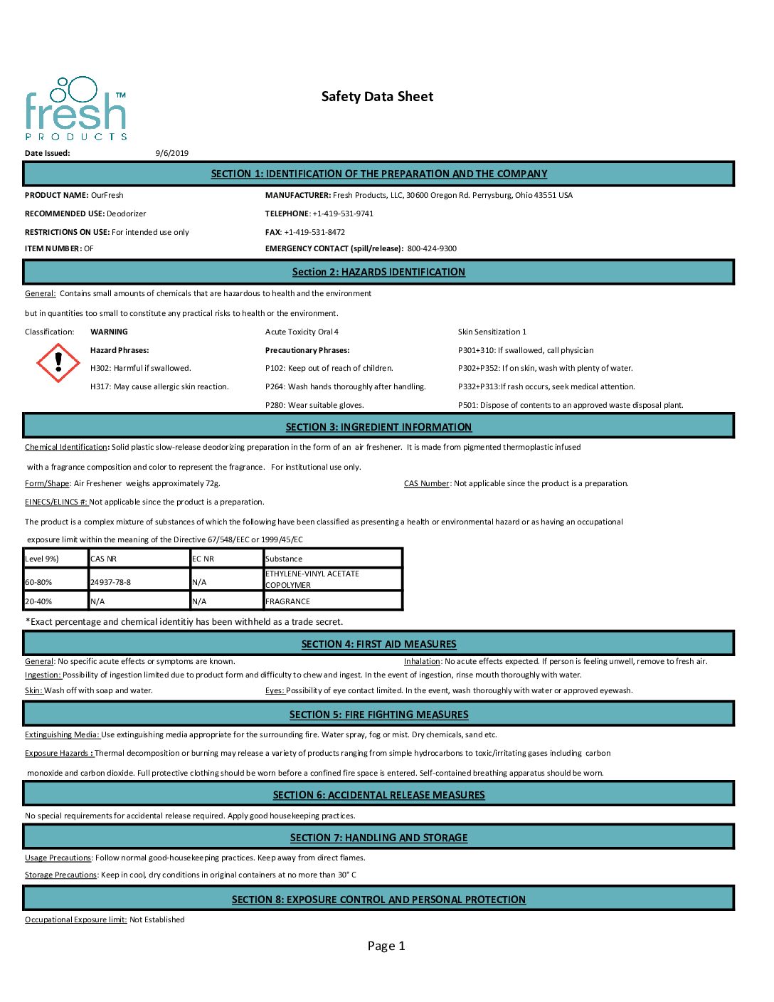| For Use With | ourfresh™ Dispenser 2.0 |