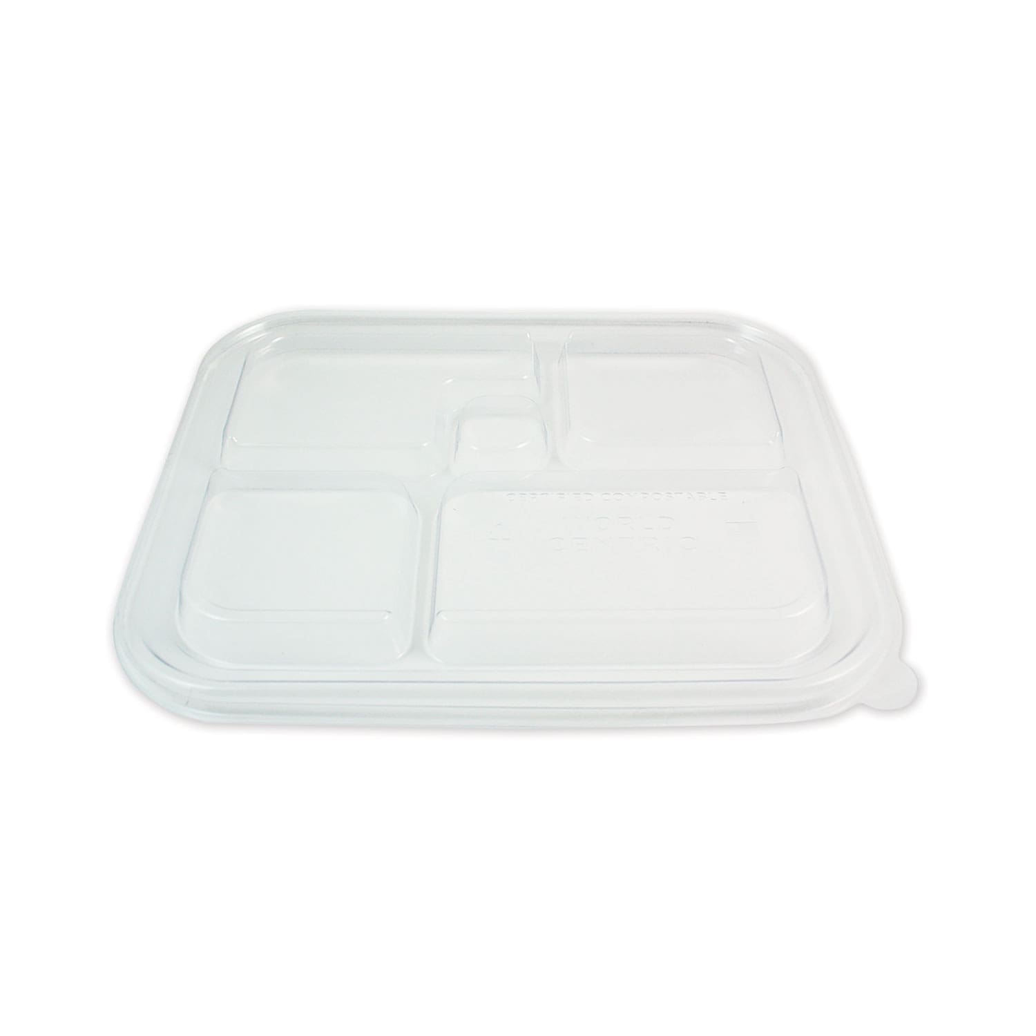 PLA Lids for Fiber Bento Box Containers, Five Compartments, 12.1 x 9.8 x 0.8, Clear, Plastic, 300/Carton