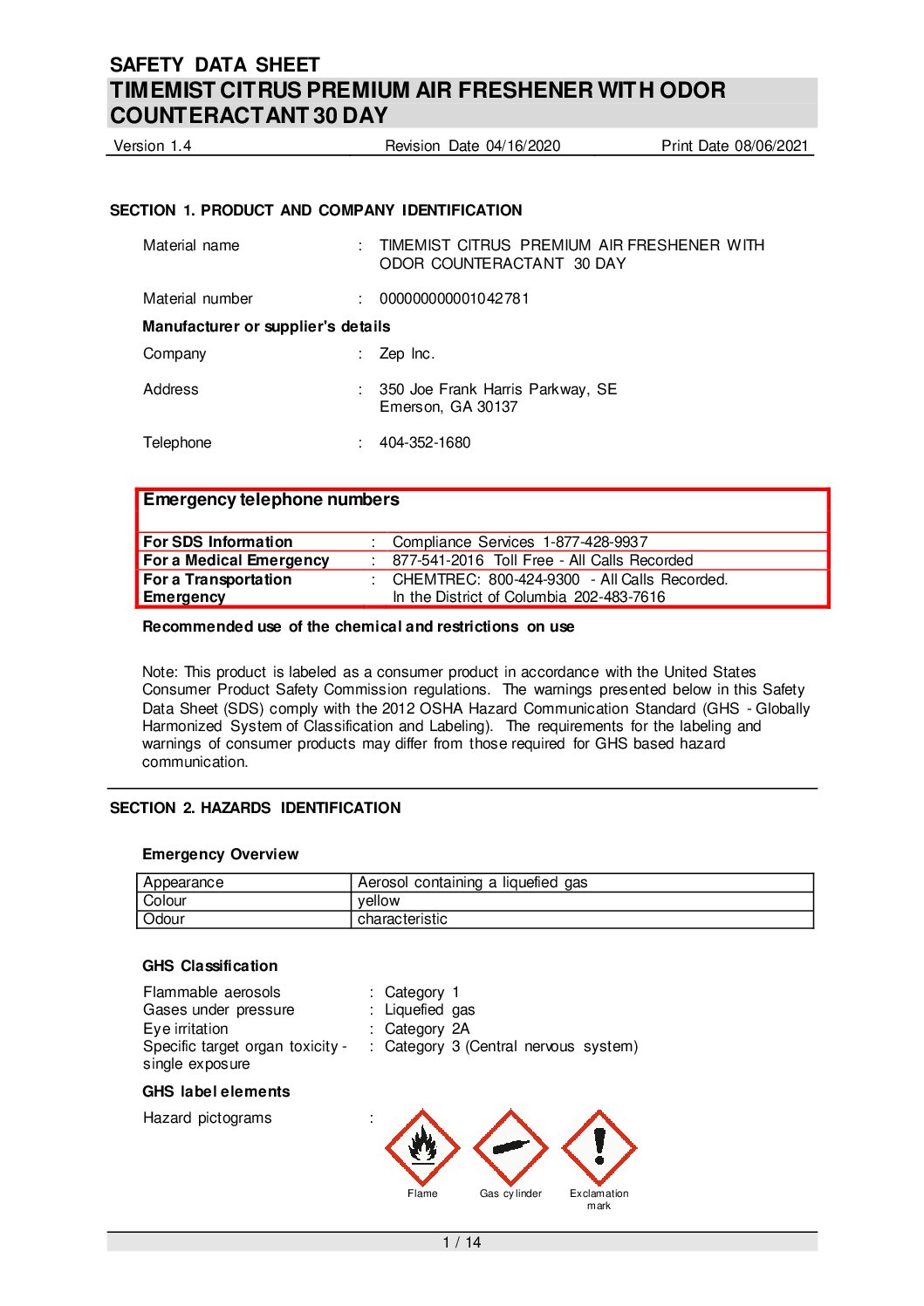 | Global Product Type | Aerosol Air Freshener/Odor Eliminator Refills |