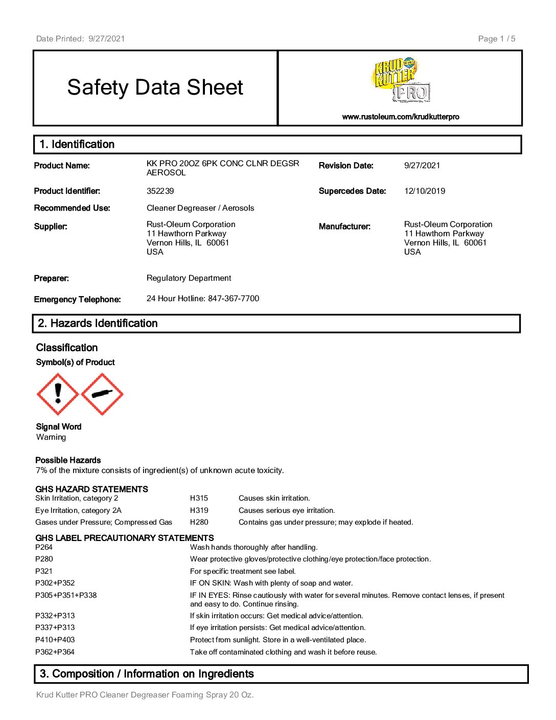 Quickly and easily remove grease, grime and much more from most non-porous surfaces with KRUD KUTTER® PRO Ready-to Use Cleaner Degreaser. It’s the ideal RTU solution for industrial cleaning jobs: tools, machinery, engine parts, construction equipment and more. Achieving maximum cleaning performance couldn’t be easier with this premixed, multi-purpose product. Spray it directly on the object to be cleaned and simply wipe oil, grease and grime away. Safe and effective on most non-porous surfaces: plastic, metal and fiberglass as well as sealed concrete, sealed asphalt, sealed non-varnished wood and more.