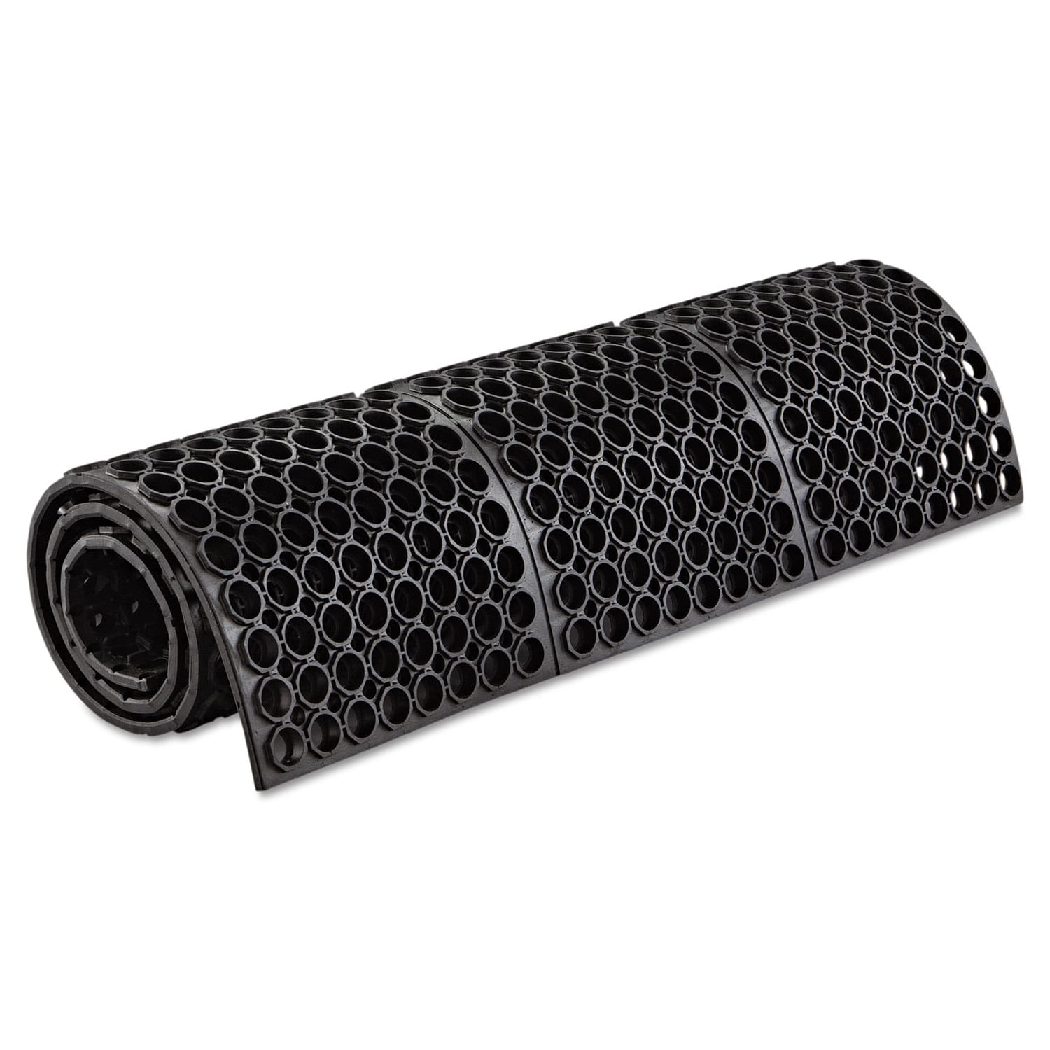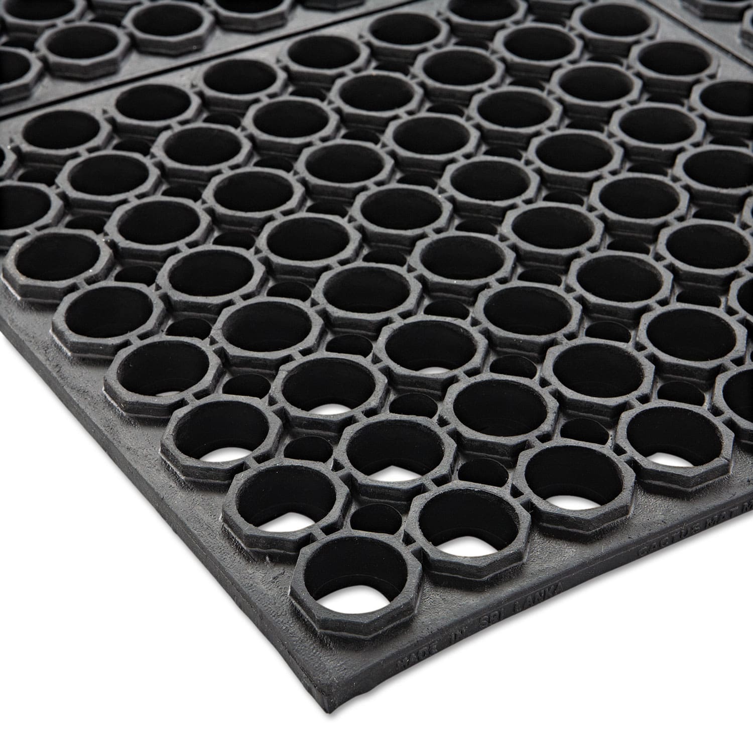 Increases the comfort and safety standards at the workplace. Raised-rib design maintains superior traction in wet and dry conditions. The square edges provide drainage and durability ideal for foodservice environments. Heavy-duty rubber construction allows easy drain-through of liquids and debris.