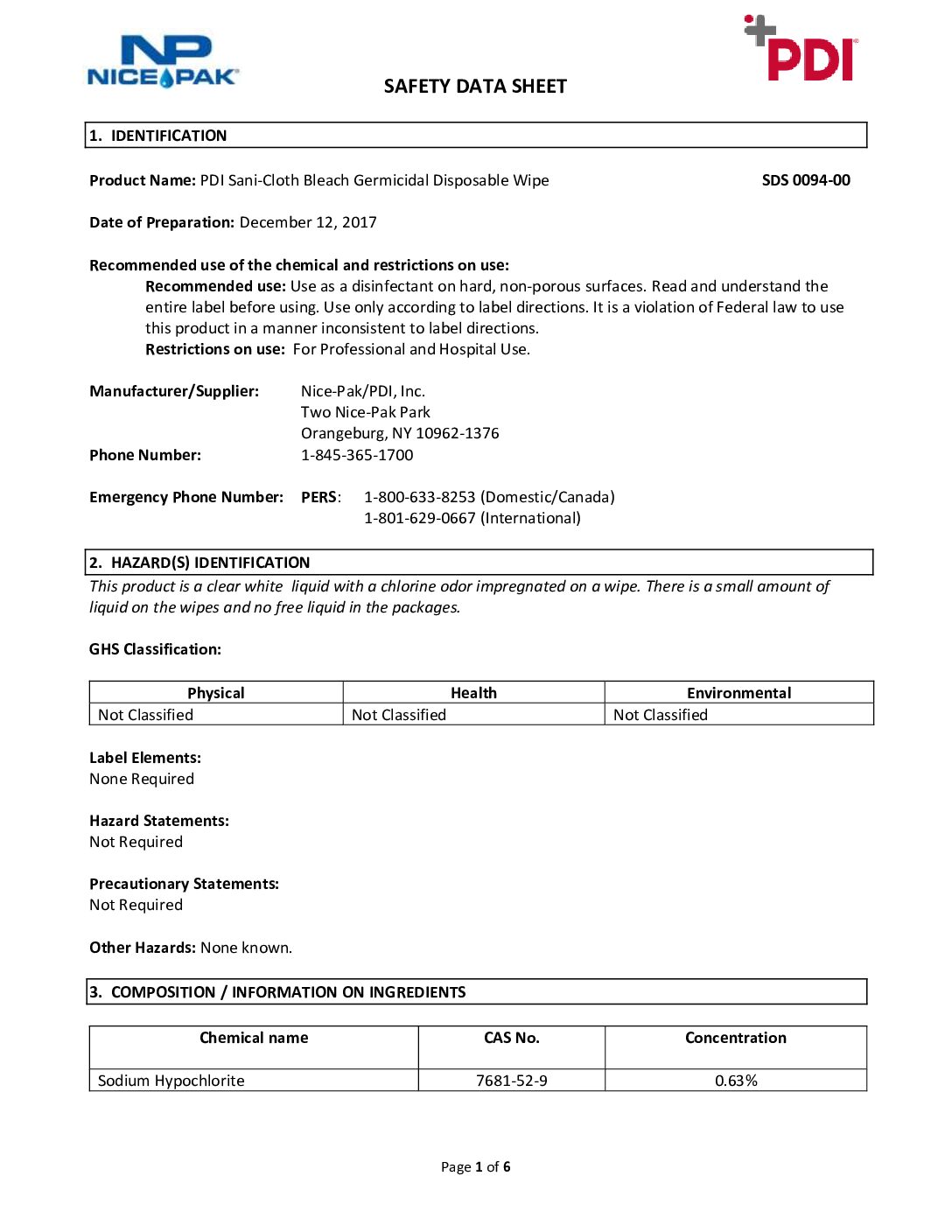 | Compliance Standards | EPA Reg. No. 9480-8; EPA List N; EPA List Q; Meets CDC, OSHA & Infection-Control Guidelines |