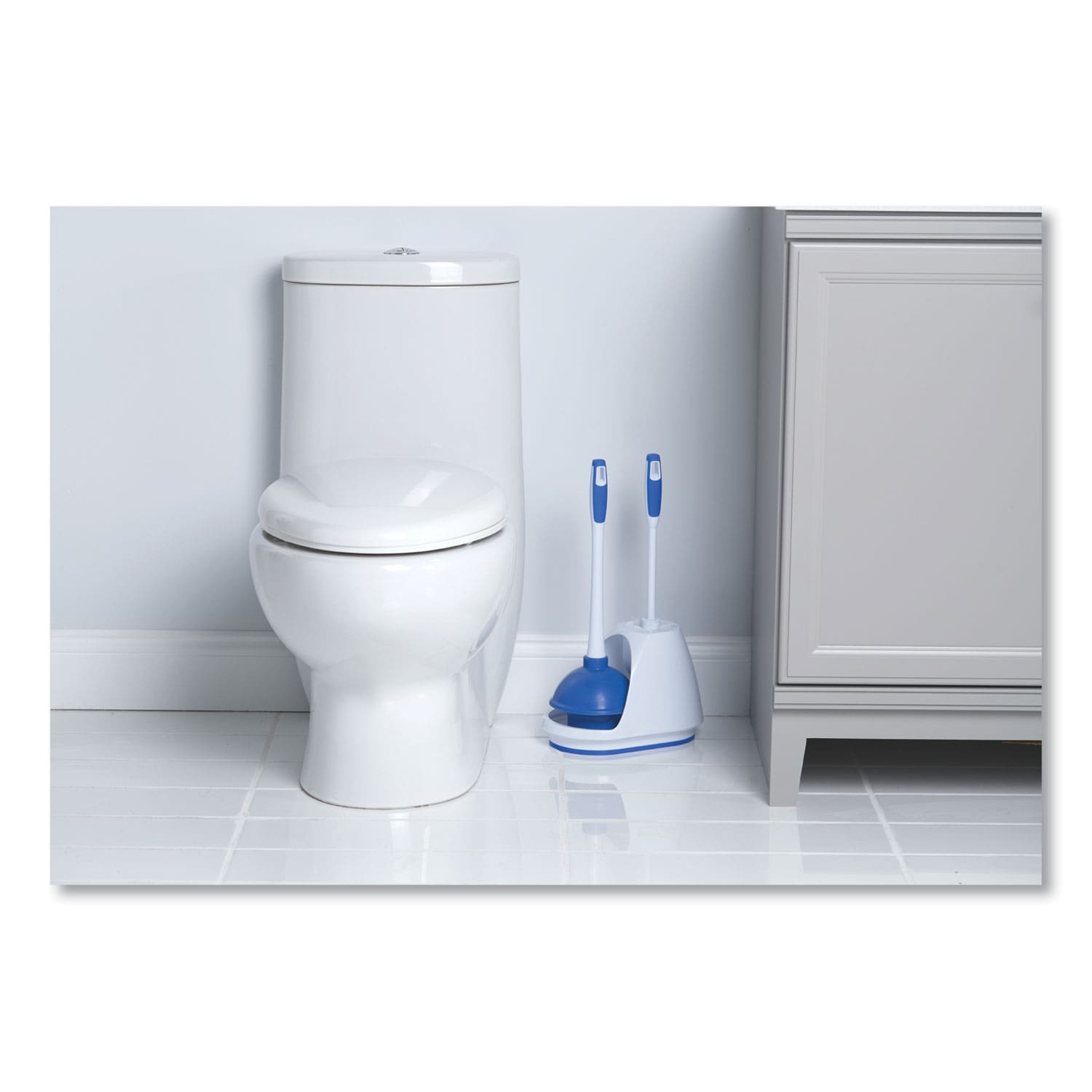 Turbo Plunger with sturdy rubber grip handle allows for comfortable, secure usage. Turbo Plunger & Bowl Brush Set features a stylish caddy that is designed to hold both the plunger and the round bowl brush together for easy storage. With a non-slip base, the caddy is certain to stay right where you put it. Extended rubber plunger is certain to get the job done. Sleek overall design makes it a great choice for restrooms where discretion is a priority.