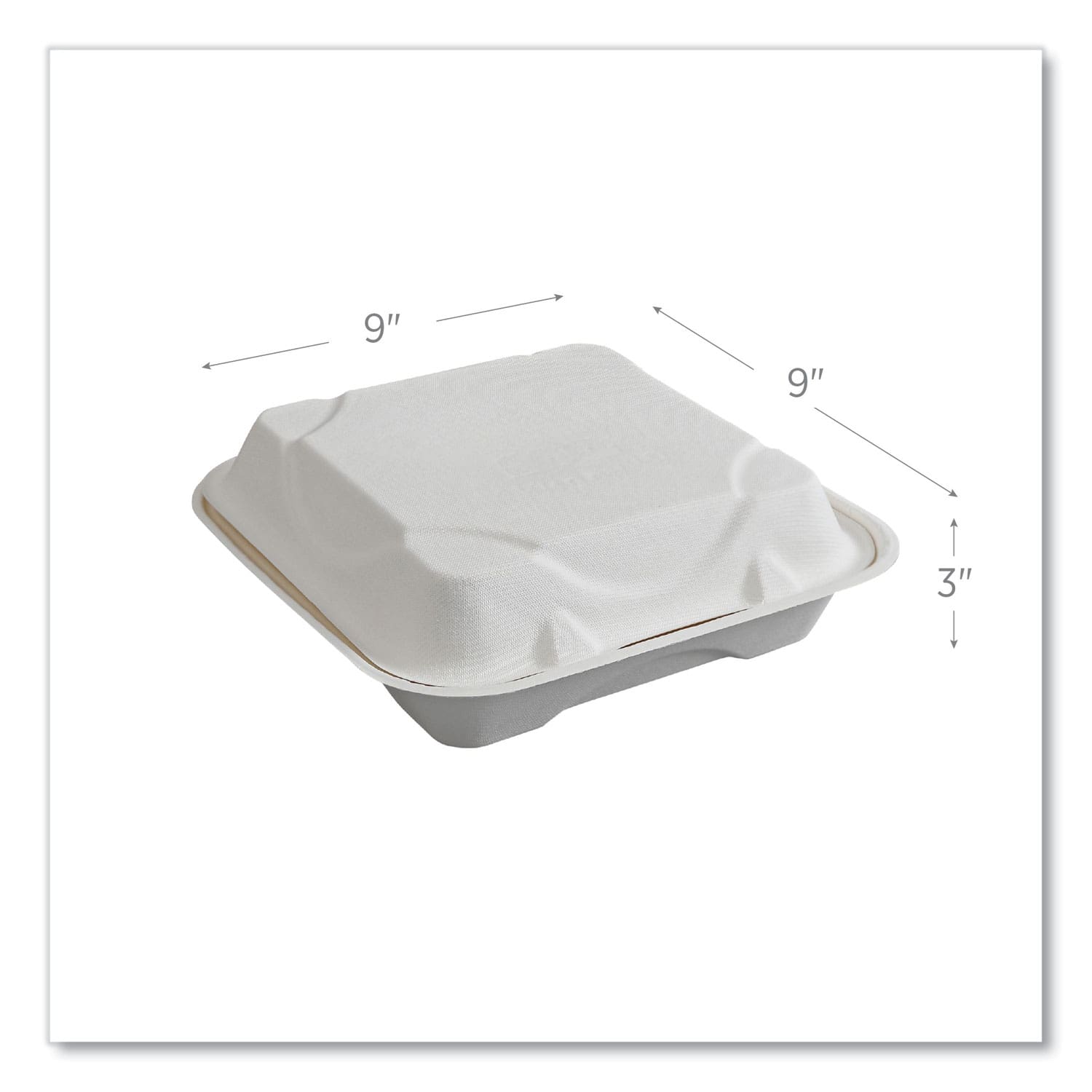 Vanguard Renewable and Compostable Sugarcane Clamshells, 1-Compartment, 9 x 9 x 3, White, 200/Carton