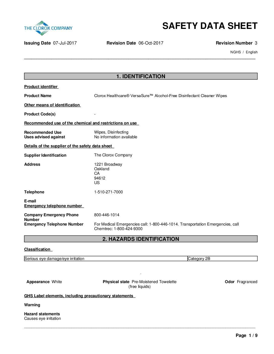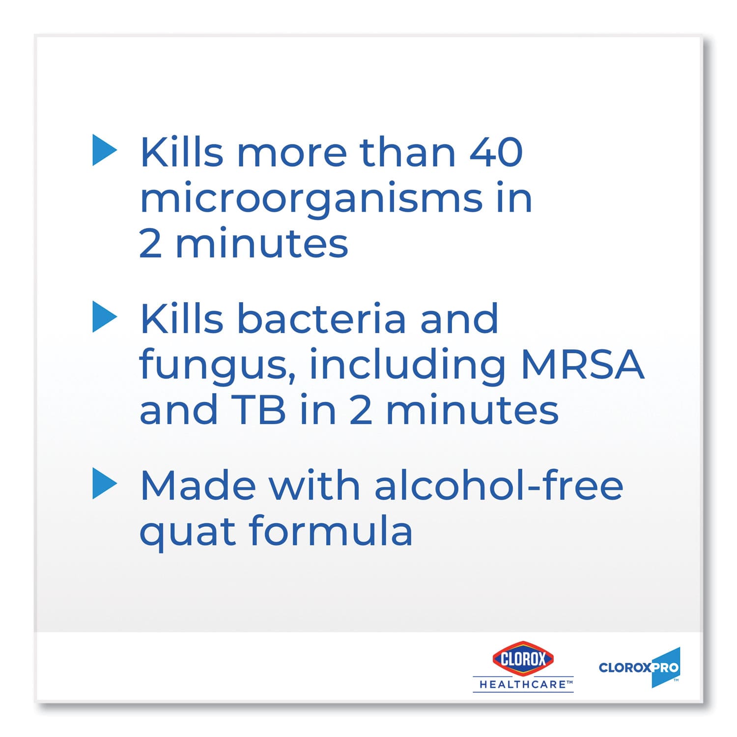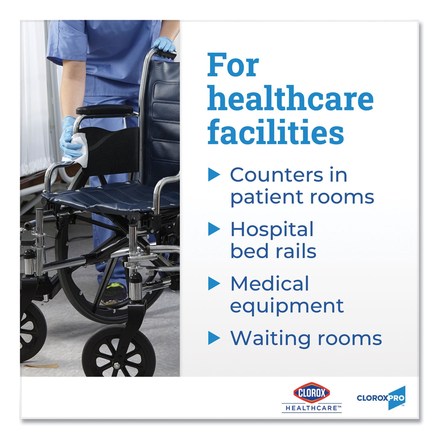 Clorox® Healthcare VersaSure Cleaner Disinfectant Wipes kill microorganisms quickly on a broad range of surfaces. These strong and durable alcohol-free wipes are a one-step solution to cleaning and disinfecting. VersaSure™ wipes are EPA-registered to kill pathogens on hard surfaces in as fast as 30 seconds for most bacteria and viruses. Designed for patient and staff comfort, these wipes are formulated with no harsh chemical odors, fumes, or added fragrances. Intended for use in commercial settings.