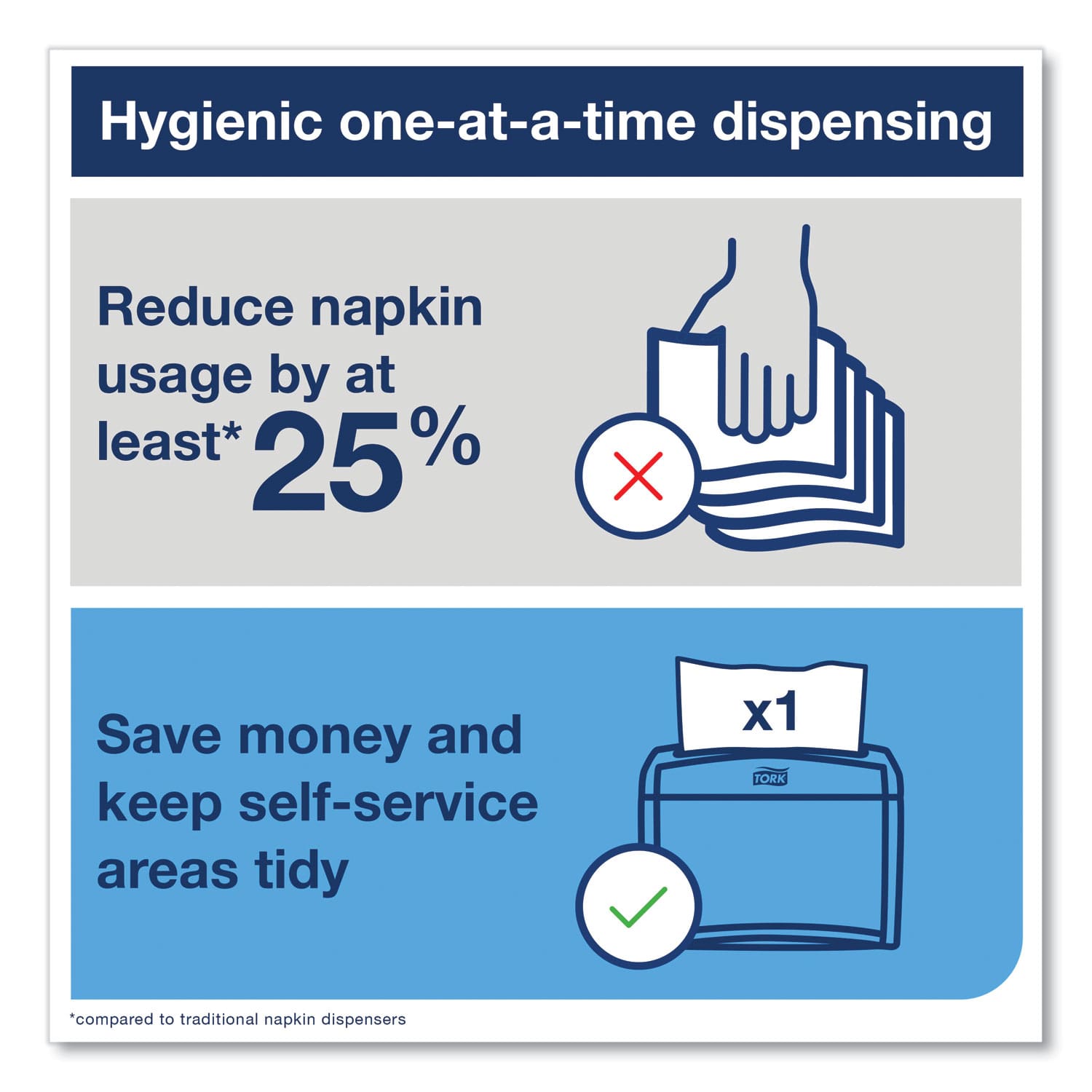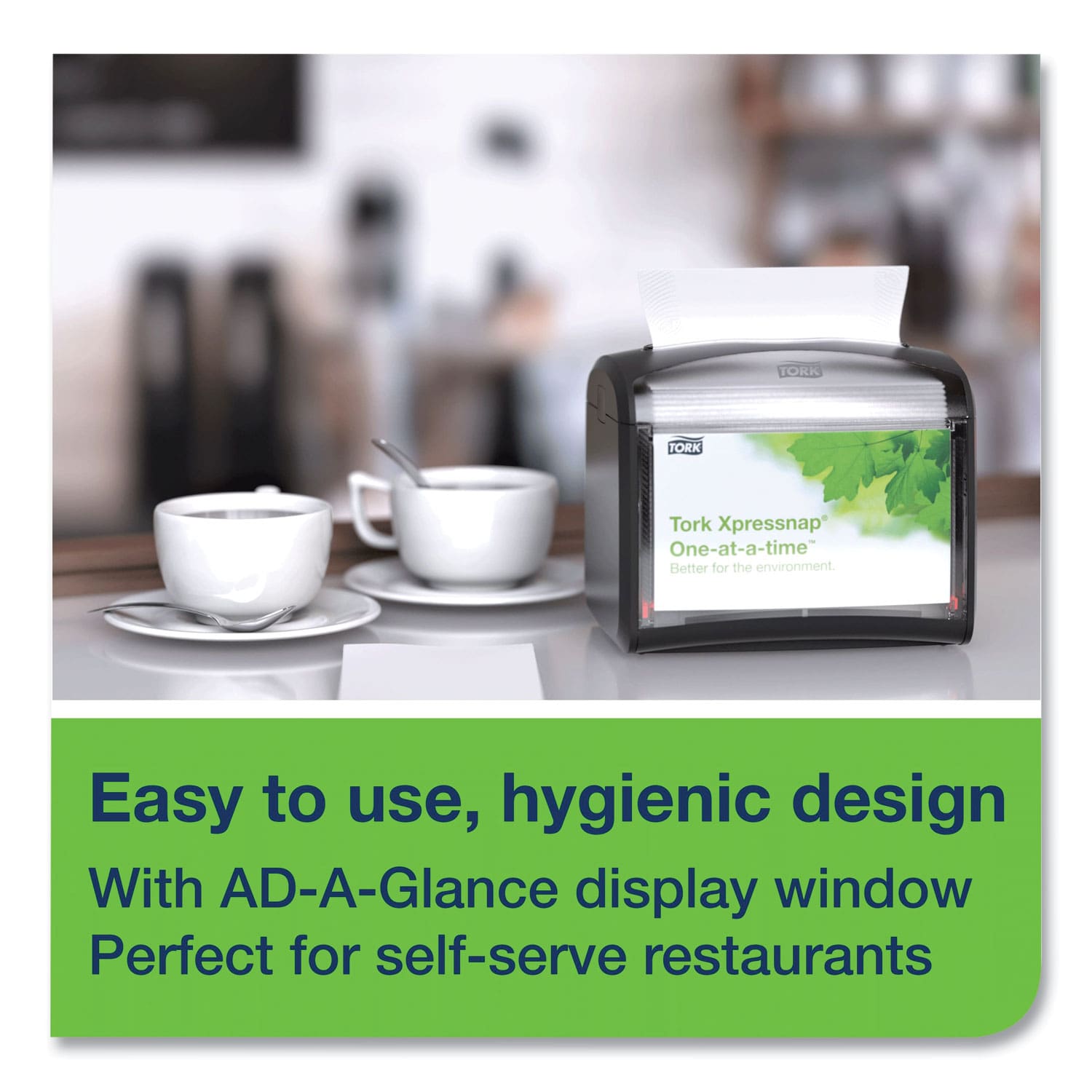 Impress your restaurant patrons with the exceptional quality of Tork® Xpressnap® Interfold Dispenser Napkins. Its one-at-a-time napkin dispensing design ensures that patrons use fewer napkins and touch only the napkin they use improving personnel hygiene. Plus, one-at-a-time dispensing helps decrease consumption, so you’ll reduce the number of cases you need to store. Xpressnap napkins are larger than major competitor interfolded napkins offering strength, absorbency and quality to users.